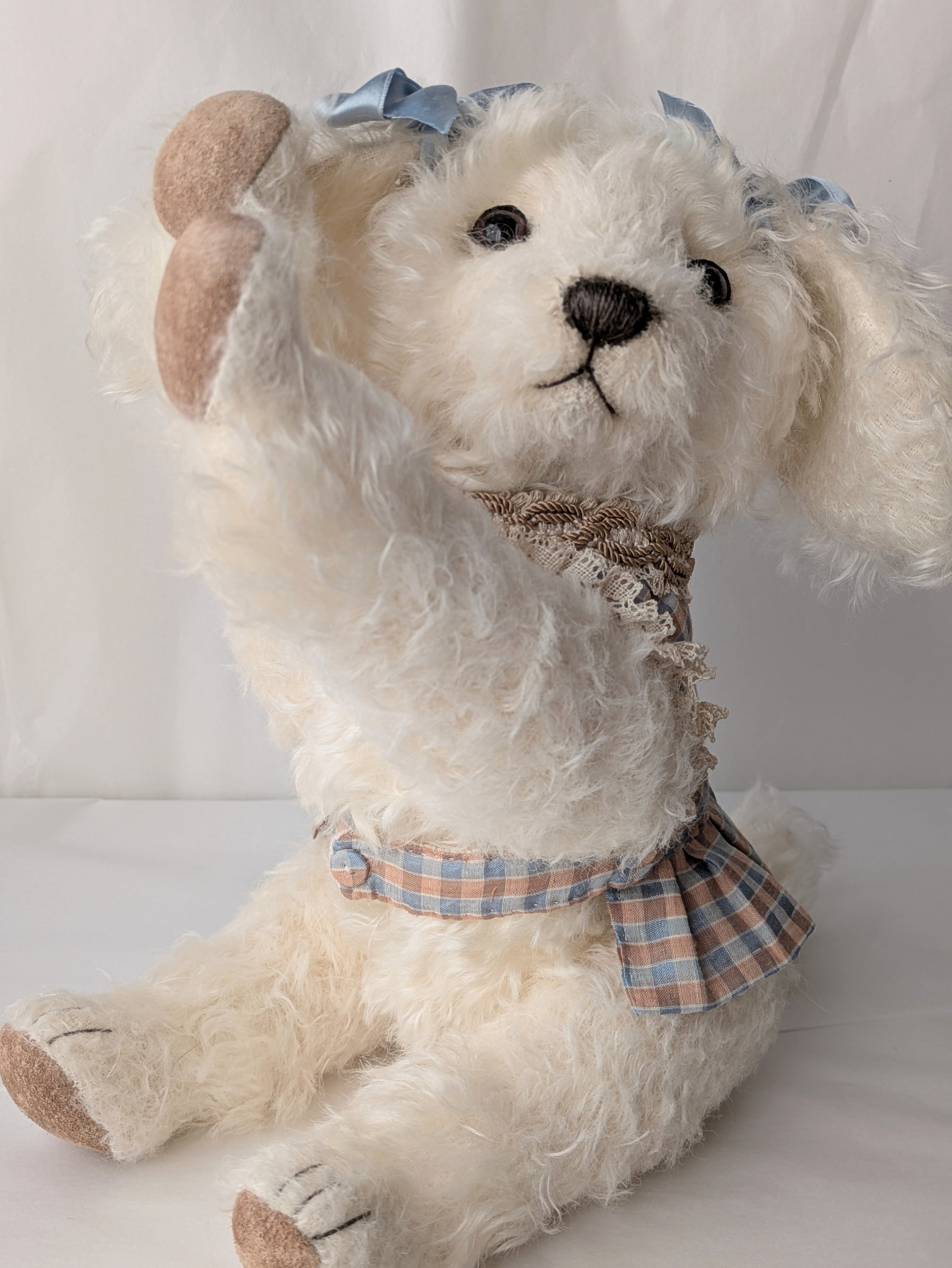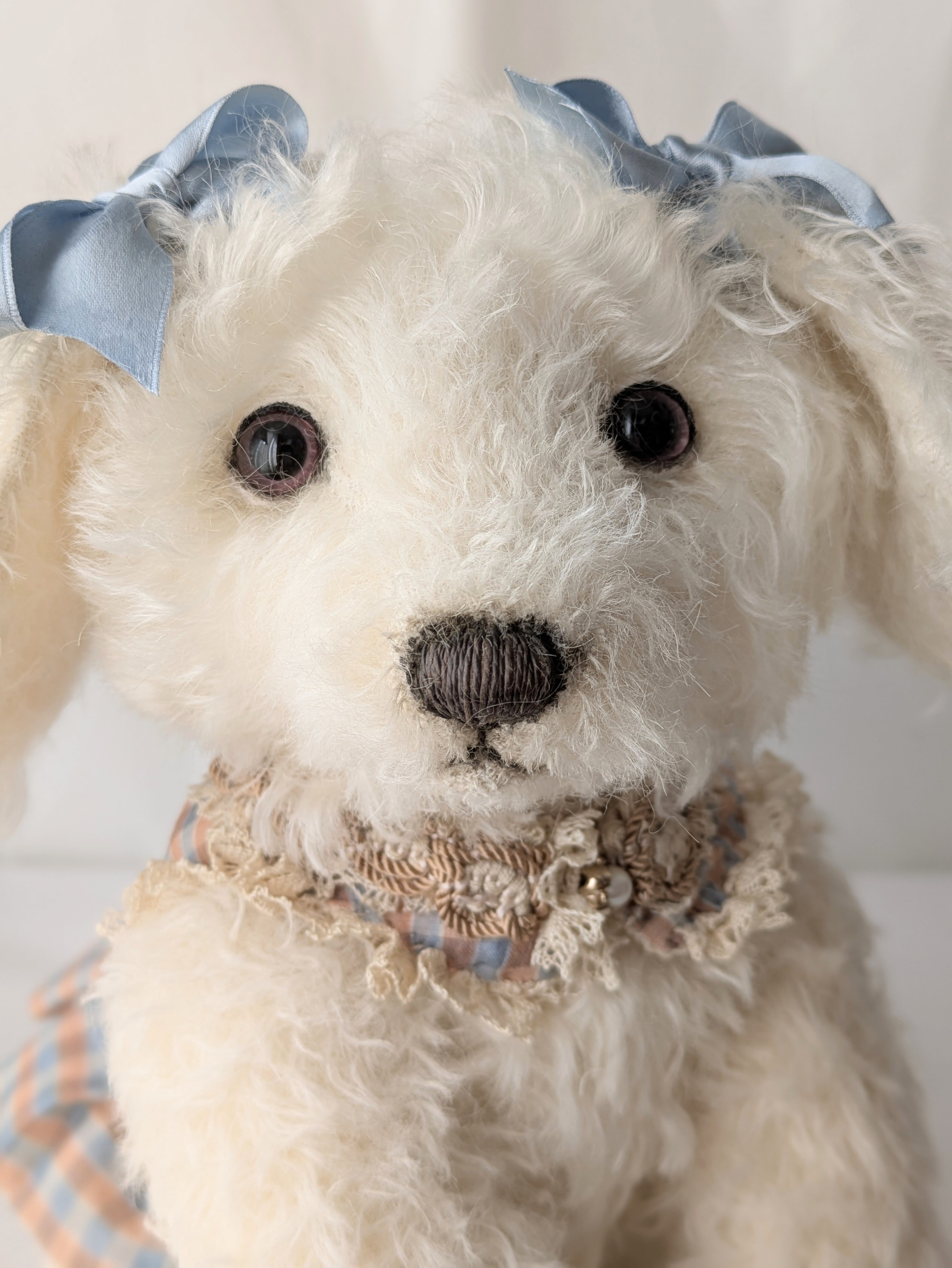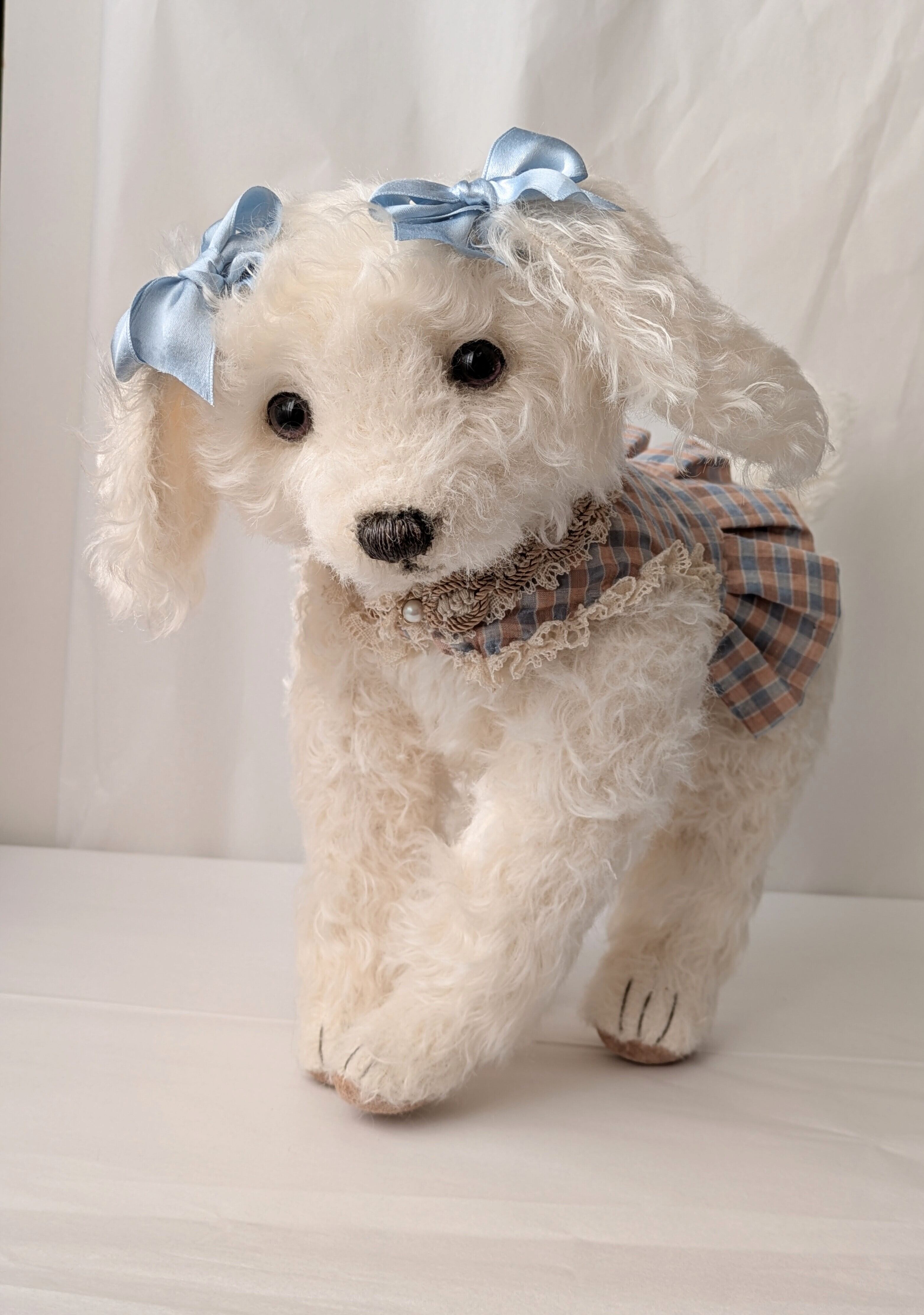 ドイツ製モヘア生地で作った犬のぬいぐるみです。